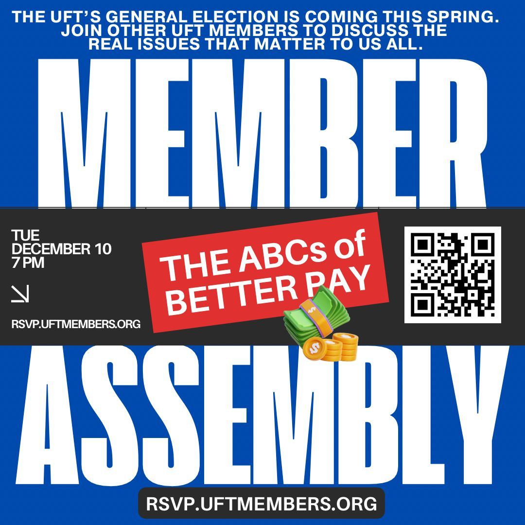 The biggest issue among those we surveyed is pay. Our current leadership takes what can charitably be called a passive approach. They let the city lowball the first union they can, most often DC37, and then settle for whatever. We have a different point of view. Join us this Tuesday, December 10th to discuss it with us.