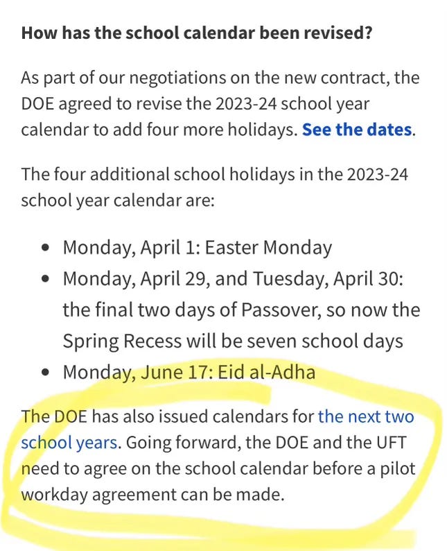 Mulgrew’s Very Smart People could have fixed this when they negotiated the calendar. Alternatively, they could’ve written into the contract that schools would close on 12/23, if it occurred on a Monday. That would have been a long-term fix. They did neither.