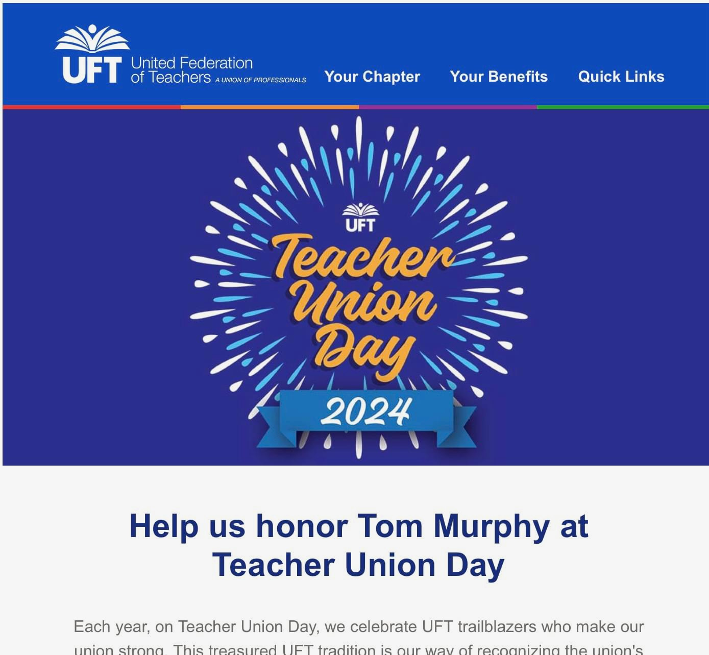 For years, we were denied representation, and our voices were effectively silenced by the Unity Patronage Mill. Now our leadership invites us to celebrate the man who orchestrated that. Make no mistake, this is yet another in a series of “screw you” statements to the newly-elected Retired Teacher Chapter.